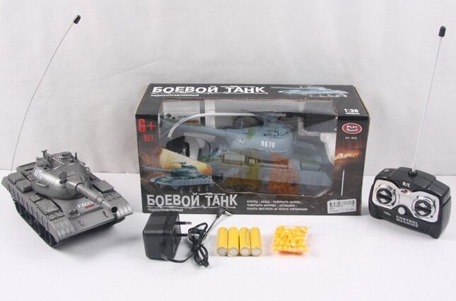 Радиоуправляемый боевой танк 9670, стреляет пульками, 1:30, гусеничный танк на пульте управления Play Smart, 27MHz, 25х11х10.5 см