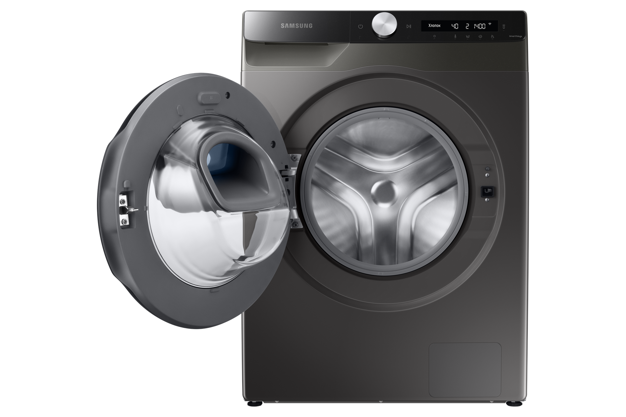 Стиральная машина Samsung WD10T654CBX/LP с сушкой, дверцей AddWash,10+7 кг, инверторным мотором, генератором Eco Bubble, обработкой паром, графит/черный