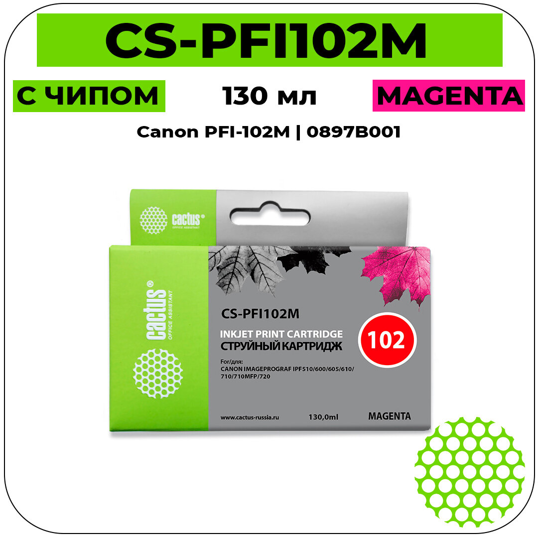 Cactus Картридж струйный Cactus CS-PFI102M пурпурный (130мл) для Canon IP iPF500/iPF600/iPF700/MFP M40/iPF765/LP17/LP24