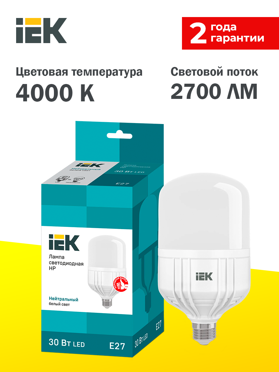 Лампа светодиодная HP 30Вт 230В 4000К E27 IEK LLE-HP-30-230-40-E27 (10шт.)