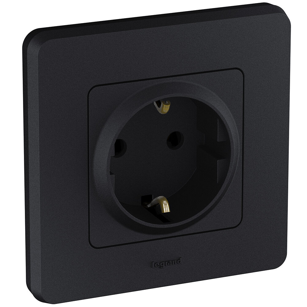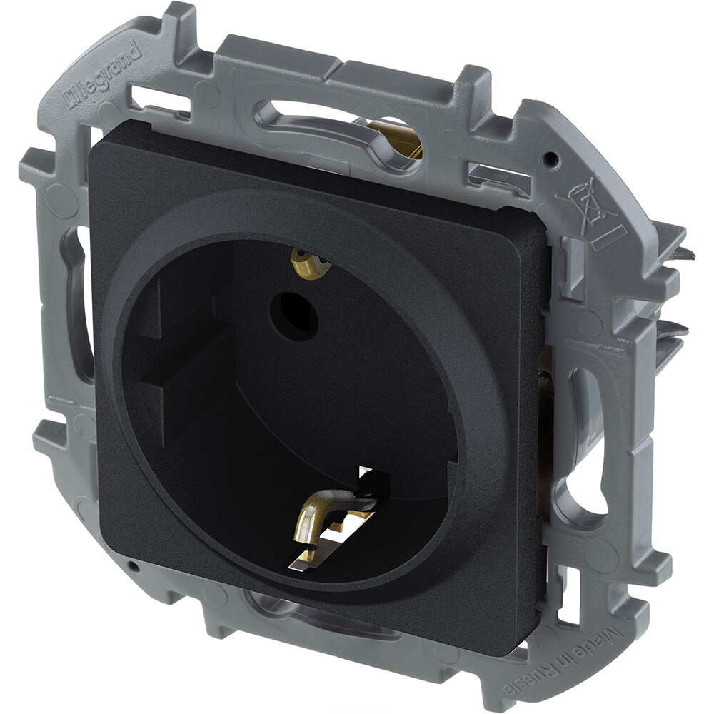 Розетка с заземлением Legrand Inspiria для скрытого монтажа , цвет "Антрацит", ток 16 А, напряжение ~250В, максимальная мощность 3680 Вт.
