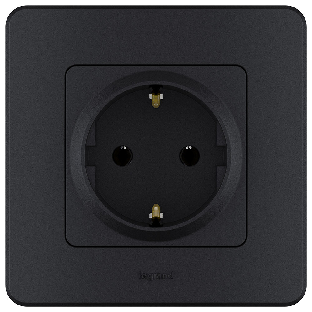 Механизм розетки 1-м СП Inspiria 16А IP20 250В 2P+E немецк. стандарт антрацит Leg, LEGRAND 673723 (1 шт.)