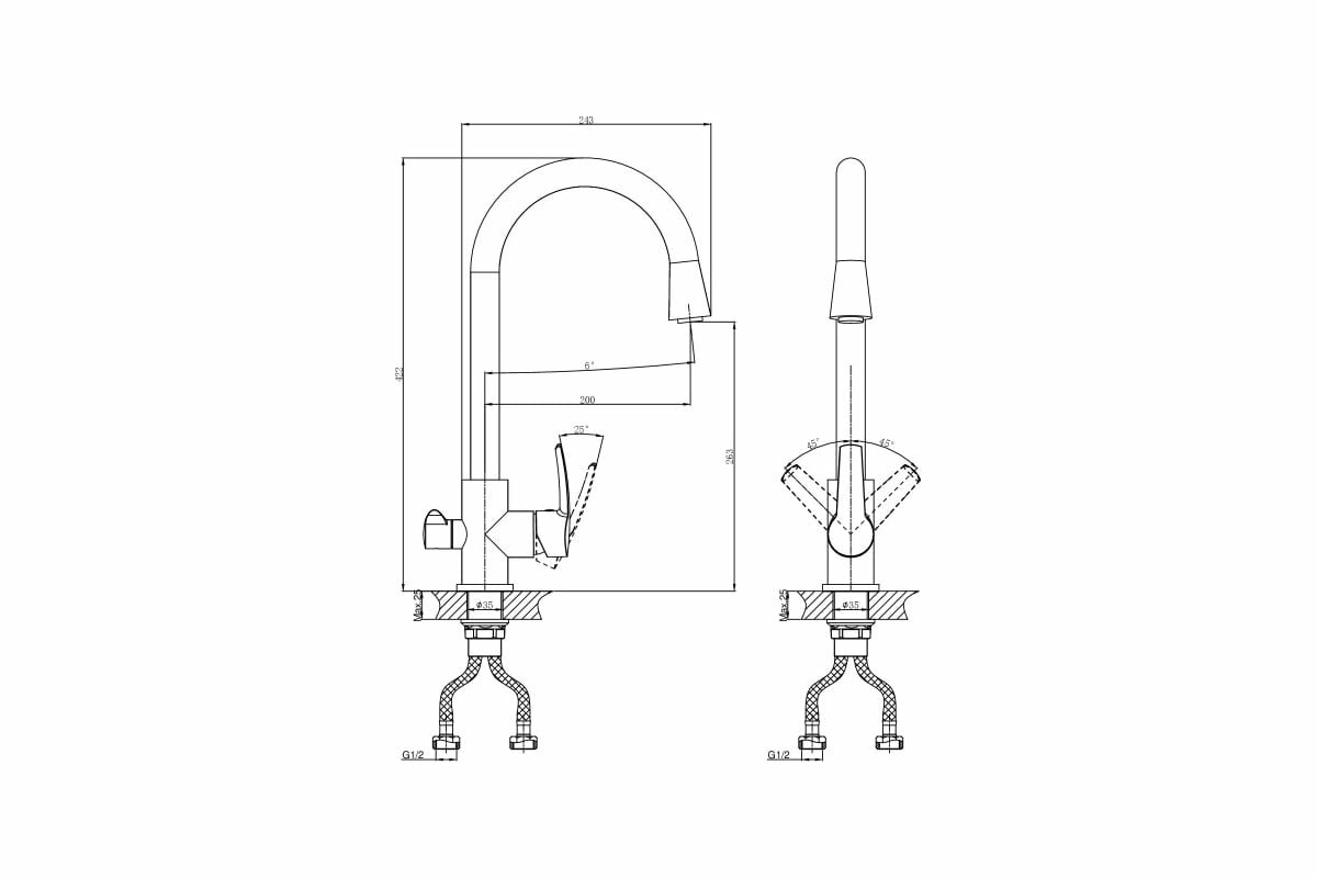 | Длина излива | 200 мм |