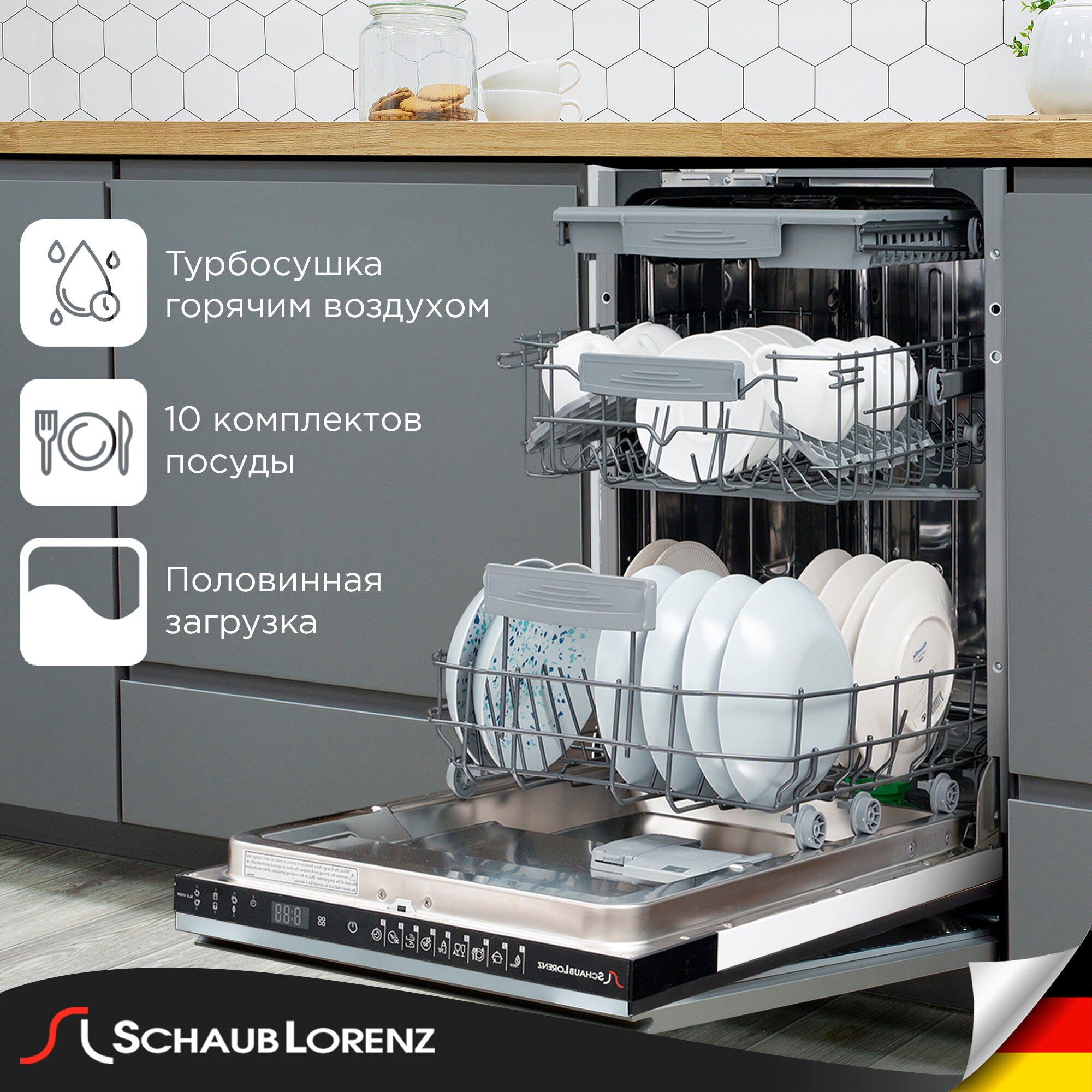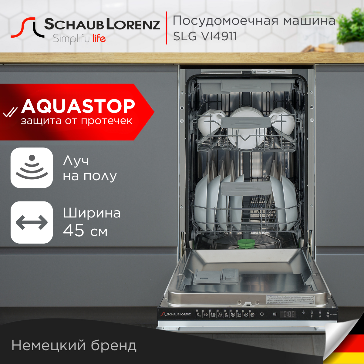 Купить Посудомоечная машина встраиваемая Schaub Lorenz SLG VI4911, 45 см, 10 комплектов, инвертор, 9 программ, турбосушка, Aquastop, луч на полу.
