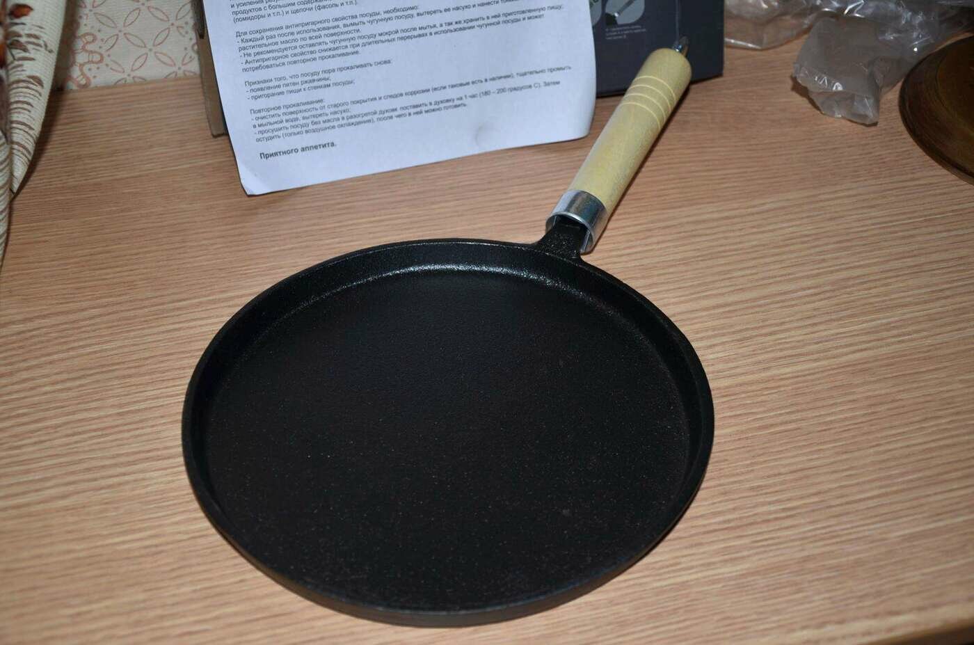 | Отзыв: | Хорошая сковорода. Предварительную подготовку прошла на заводе, т.е. можно сразу печь блины. Только сполоснуть предварительно. Поскольку сковорода из чугуна, то она требует ухода после каждого использования. В инструкции об этом написано. Блины на ней печь одно удовольствие. Не пригорают. |