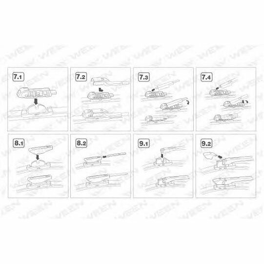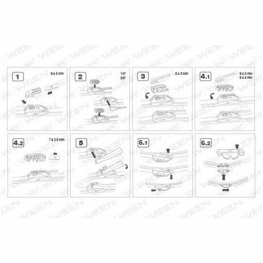 Стеклоочиститель бескаркасный 20/500mm адаптеры (крючок ,side pin,push button,pinch tab, top lock) Ween 100-4020
