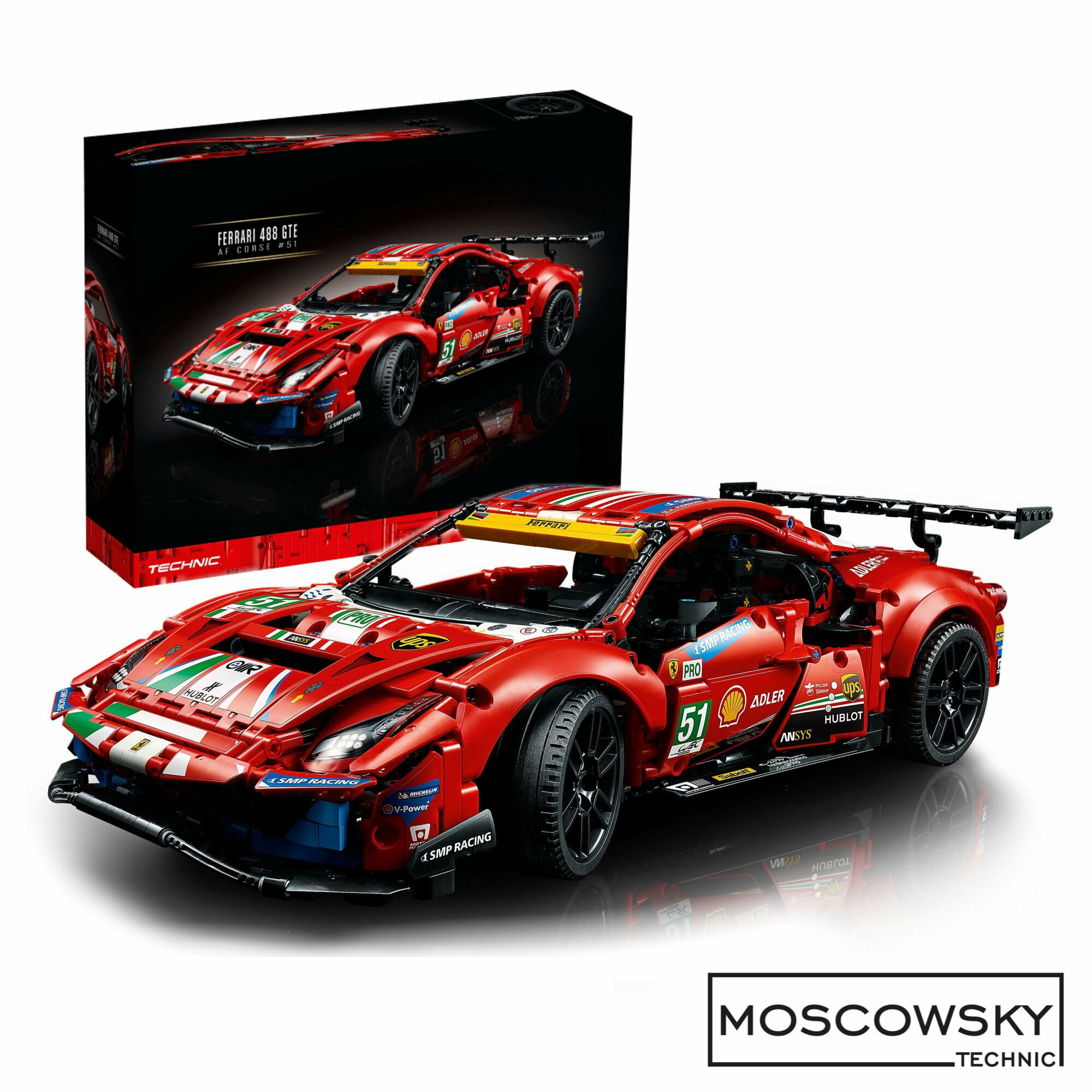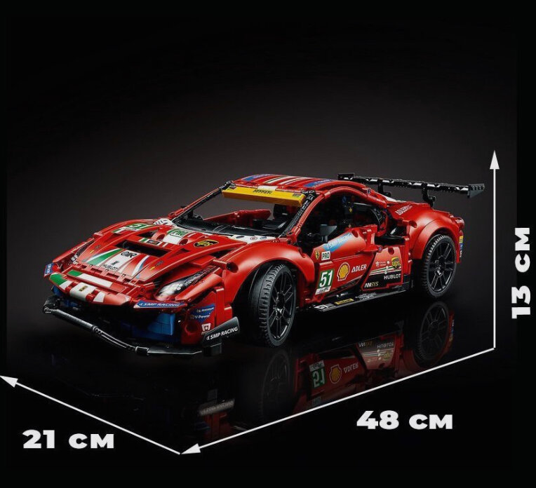 Конструктор Техник Ferrari 488 GTE. Феррари, 1677 деталей, совместим с лего