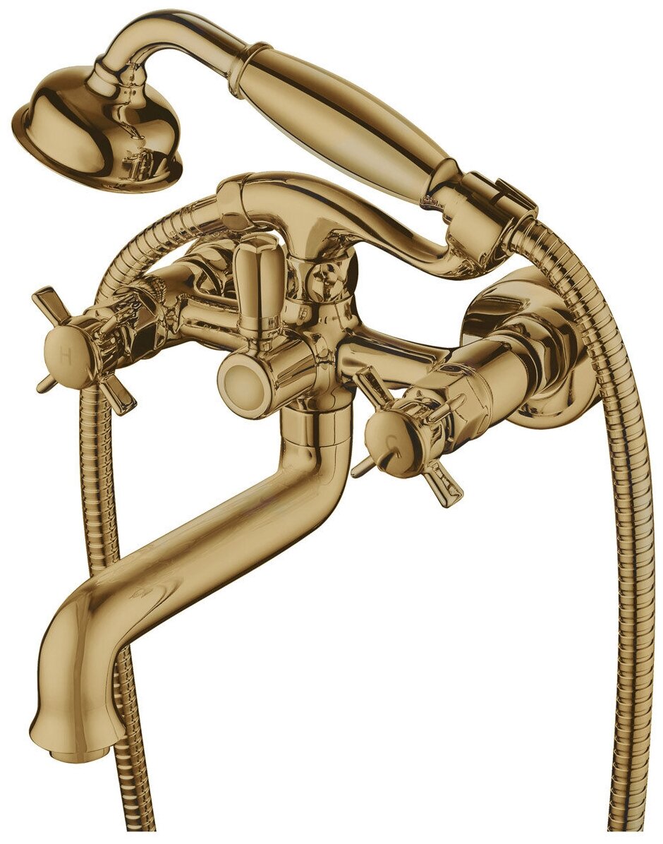 Смеситель для ванны и душа Kaiser (Кайзер) Cross 41022-1 Bronze двухвентильный с лейкой и шлангом, цвет - бронза