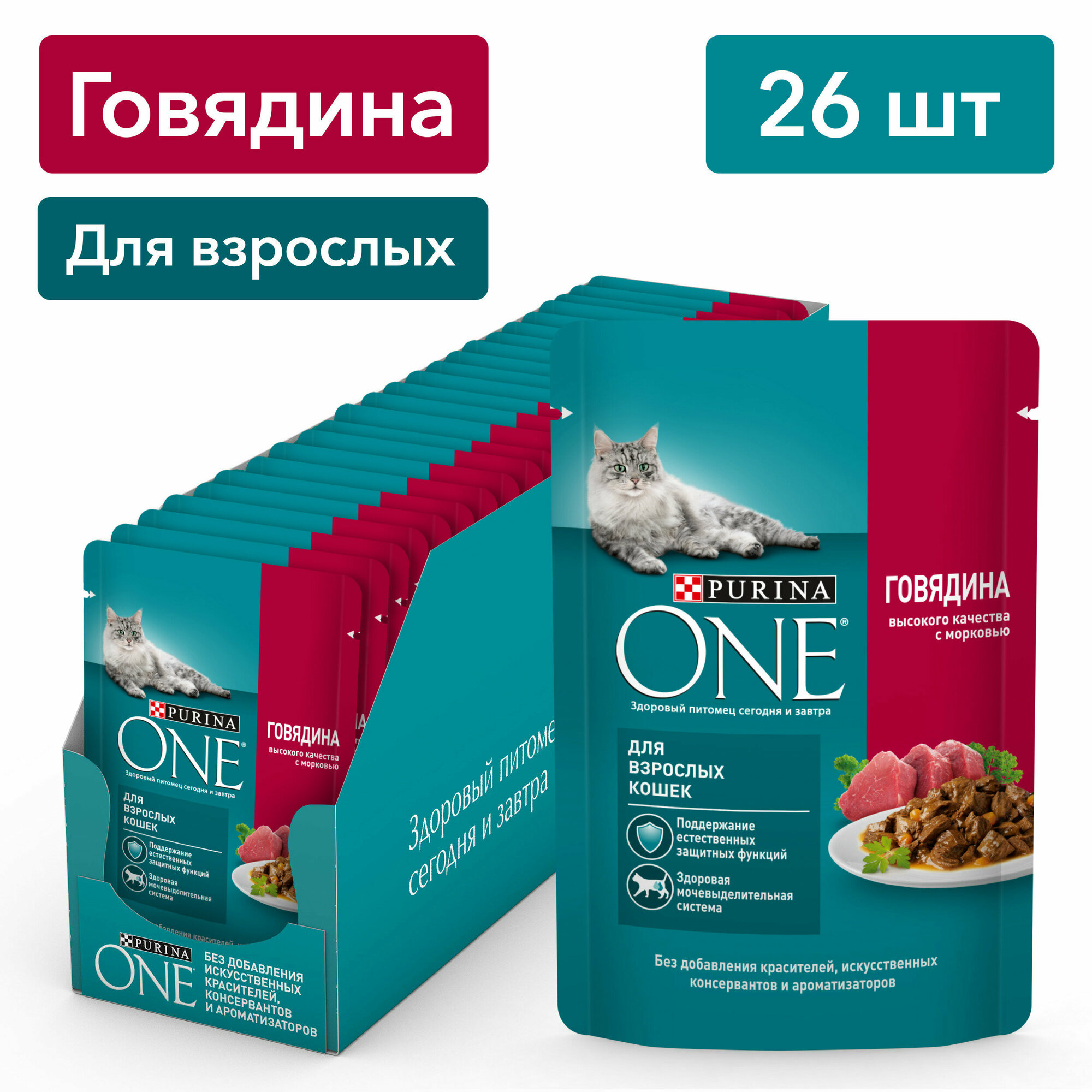 Купить Purina One пауч для взрослых кошек Говядина и морковь, 75 г. упаковка 26 шт