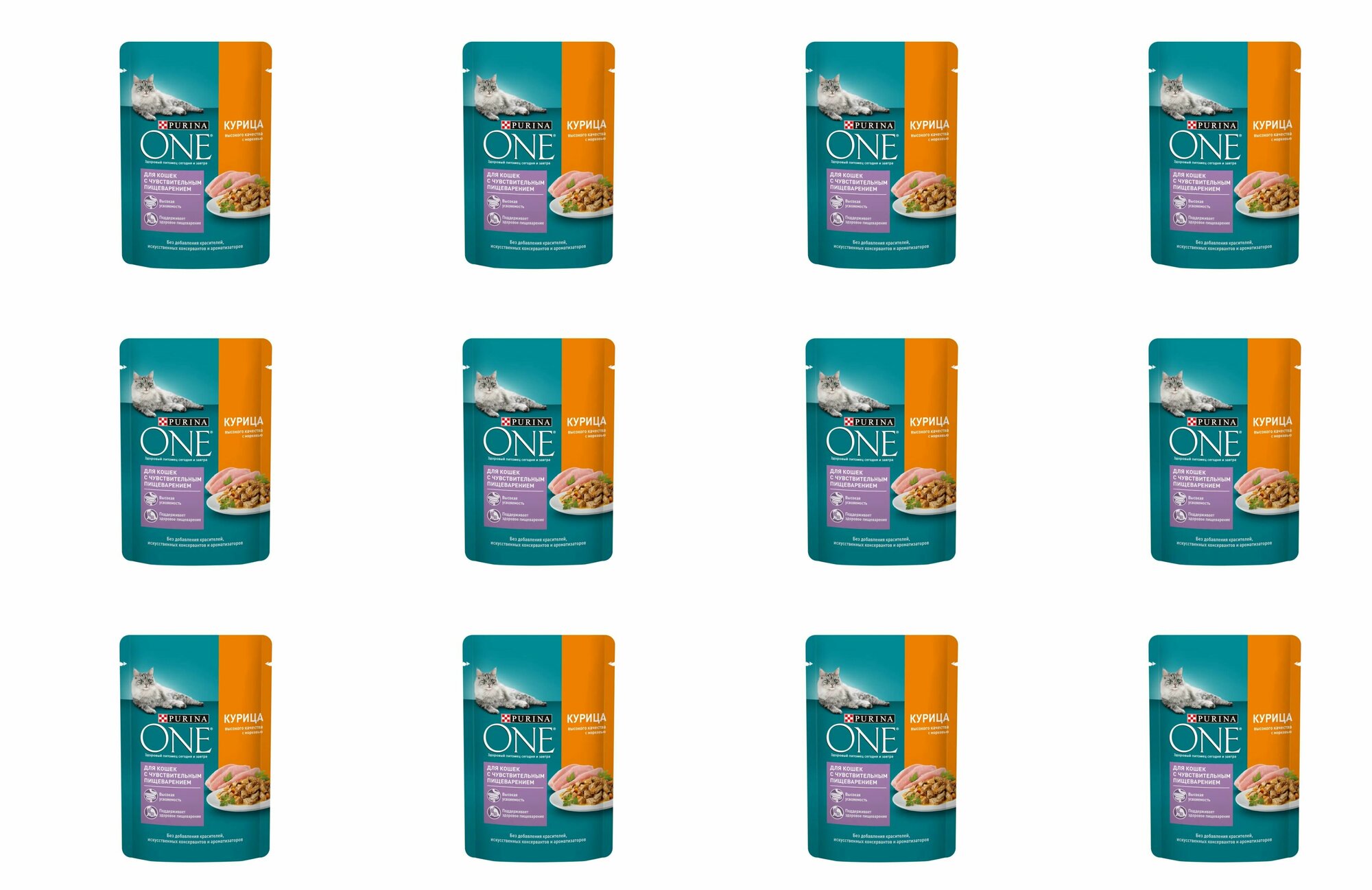 Purina One Паучи для кошек с чувствительным пищеварением с курицей и морковью 124218081245615112483287 0,075 кг 41532 (10 шт)