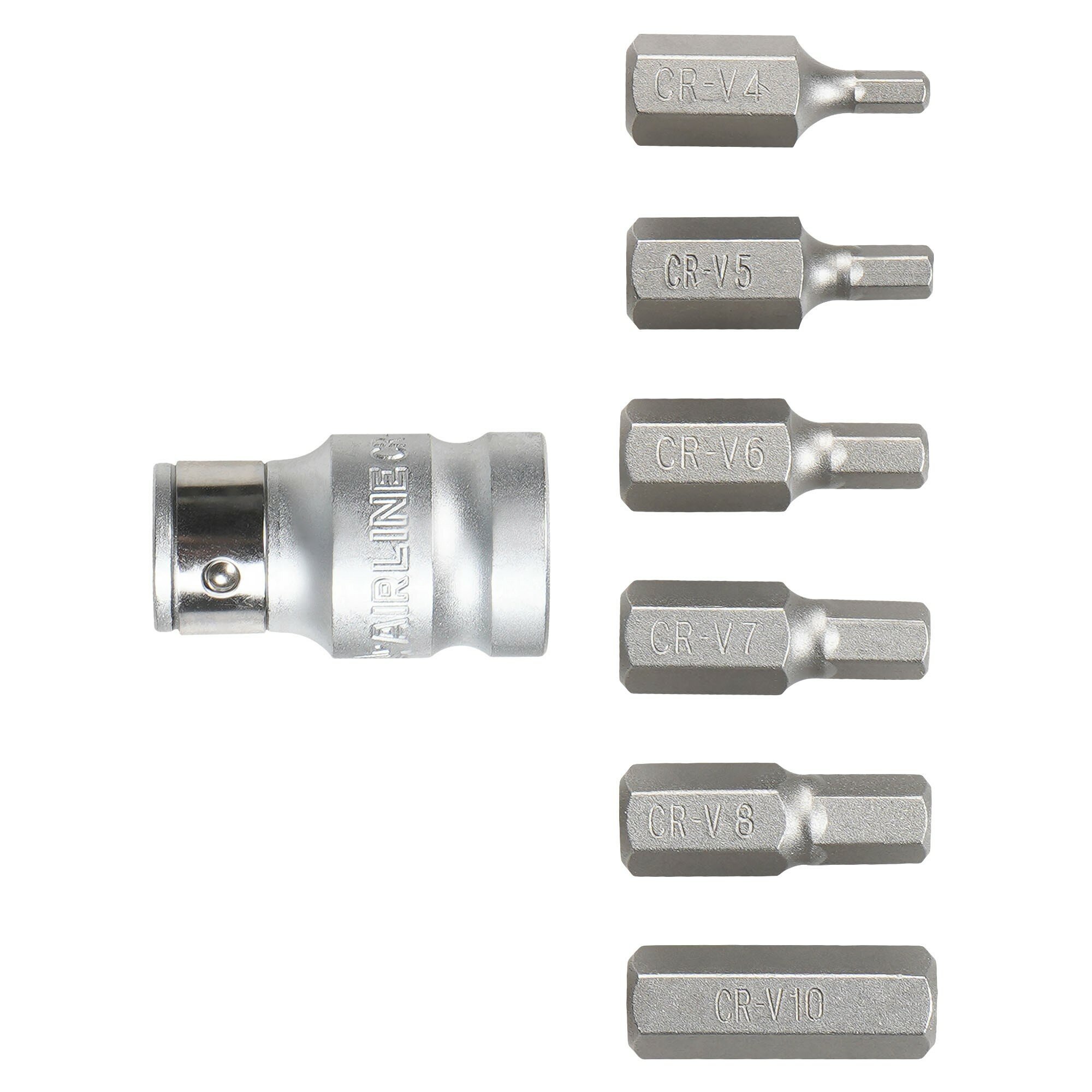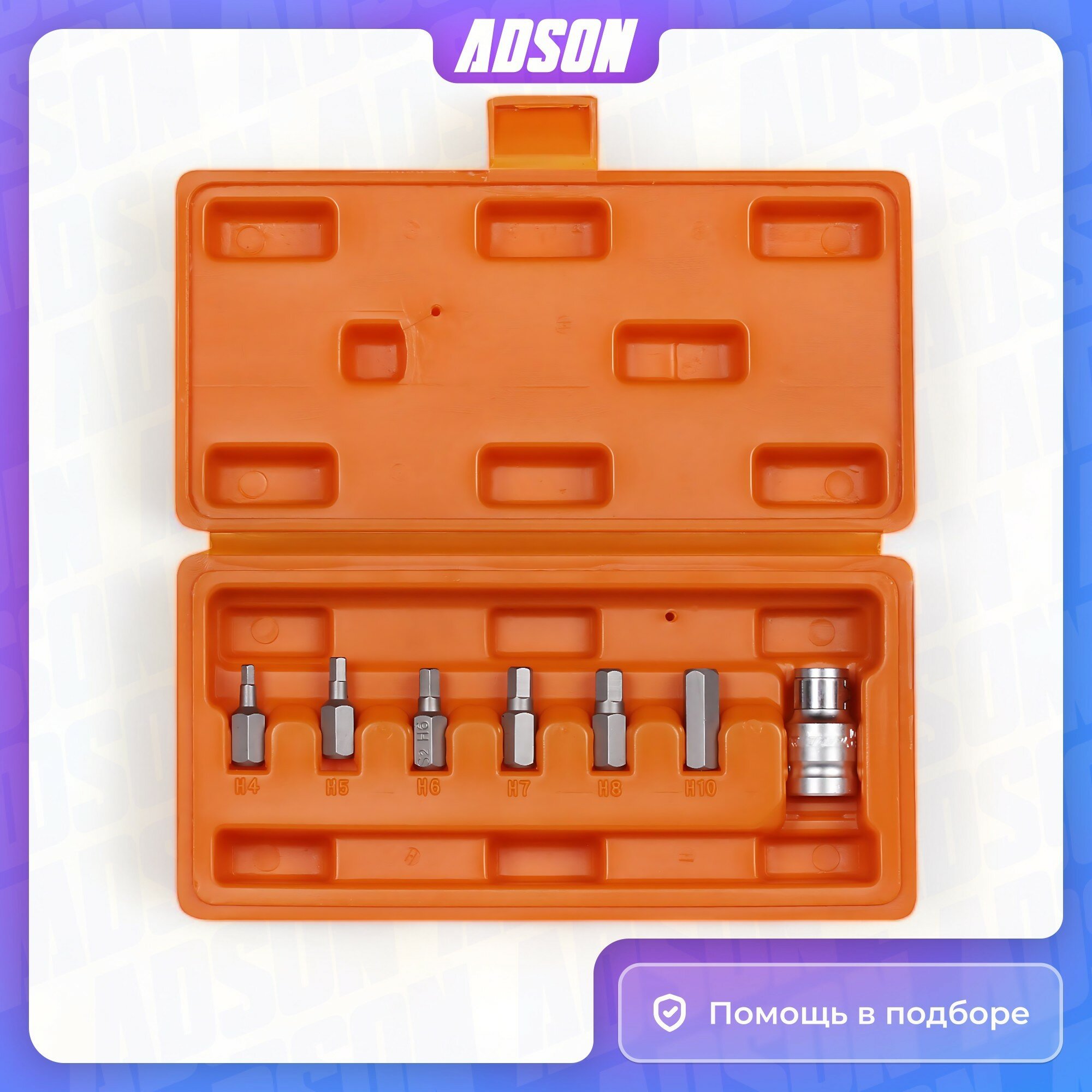 | Биты подробно | НEX: 4, 5, 6, 7, 8, 10; 1/2” DR адаптер для бит |