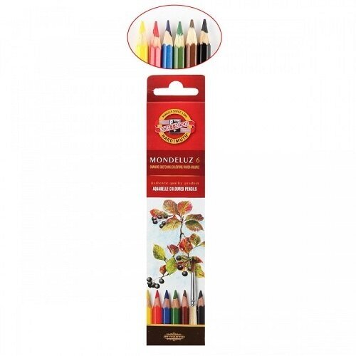 Карандаши цветные KOH-I-NOOR акварельные художественные "Mondeluz", 6 цветов, 3,8 мм, заточенные (3715006001KSRU)