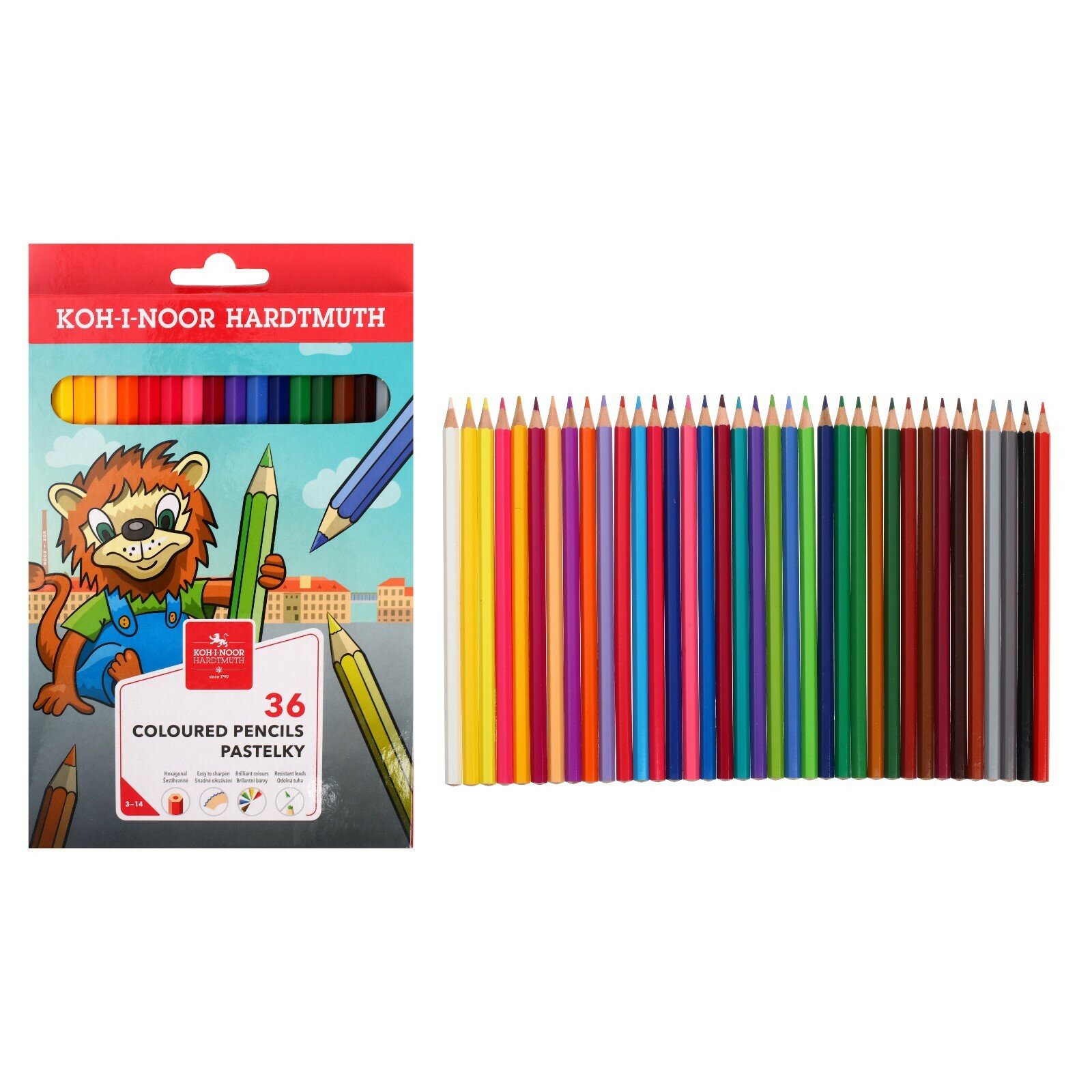 Карандаши цветные Koh-I-Noor "Lion", 36цв., заточен., картон, европодвес (арт. 323230)