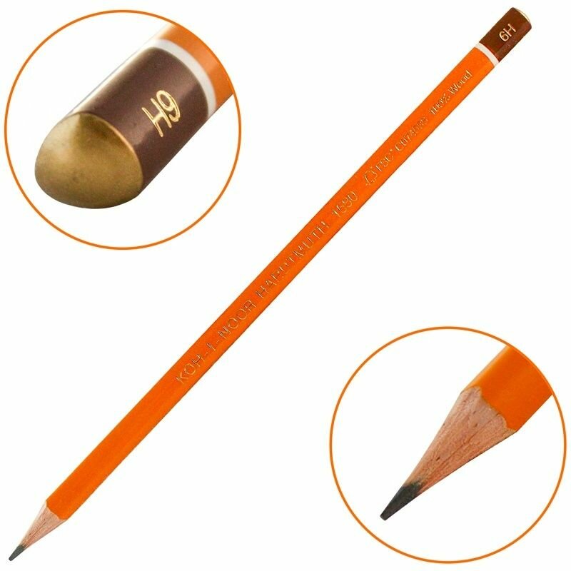 Набор профессиональных чернографитных карандашей Koh-i-noor трехгранных, твердость 6В-6Н, 12 шт