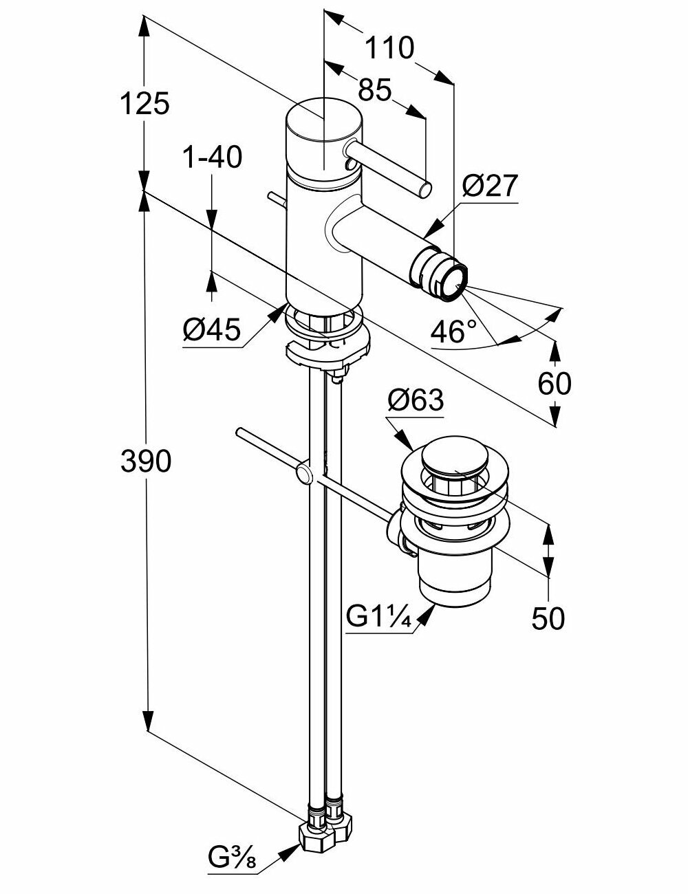 Смеситель Kludi Bozz для биде 385330576