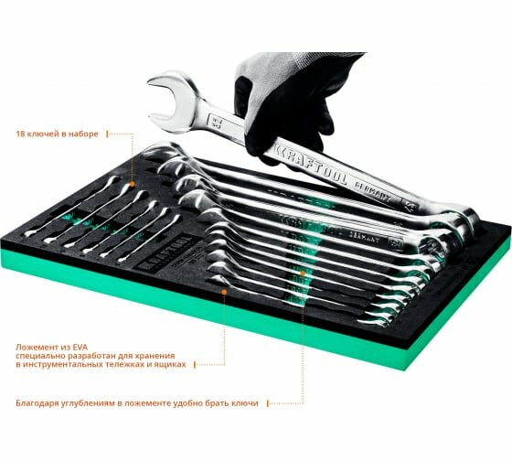 Набор комбинированных гаечных ключей KRAFTOOL 6-32 мм, 18 предметов 27079-H18_z01
