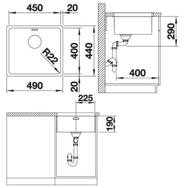Кухонная мойка Blanco ANDANO 450-U нержавеющая сталь 522963