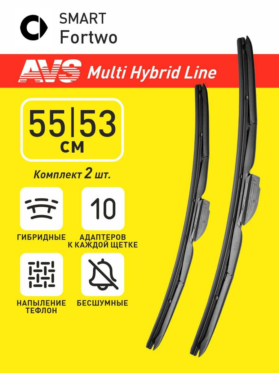 Дворники (щетки стеклоочистителя) гибридные AVS MHL для SMART Fortwo 2007-2015 (550-530 мм)
