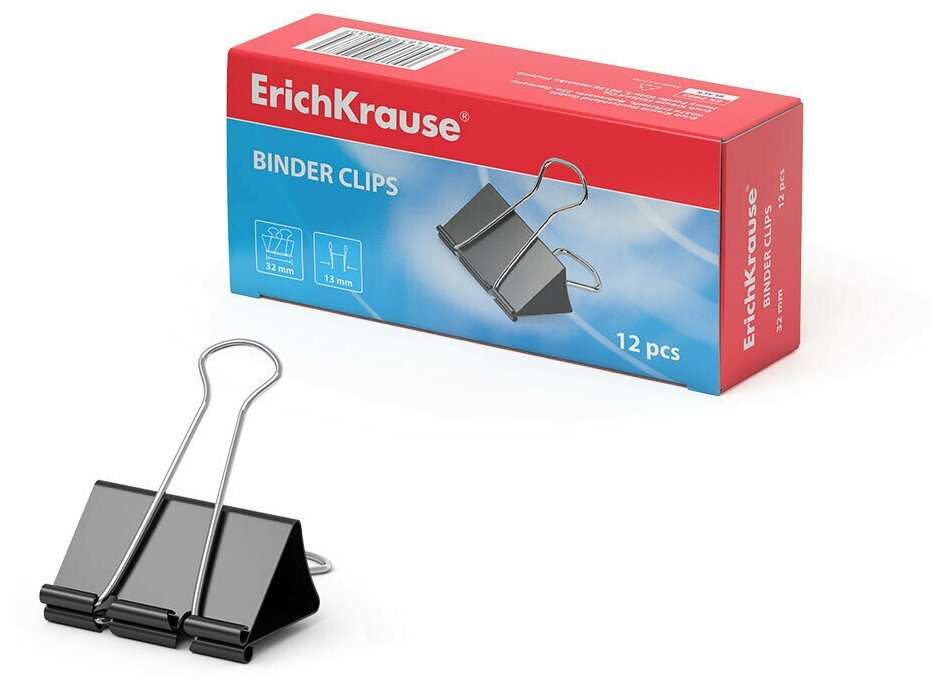 Купить Зажимы для бумаг ErichKrause, 32мм (коробка 12 шт.)