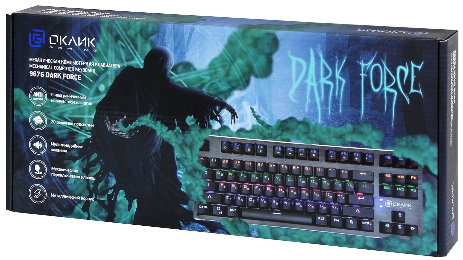 Клавиатура Оклик 967G механическая серый USB for gamer LED интересное: