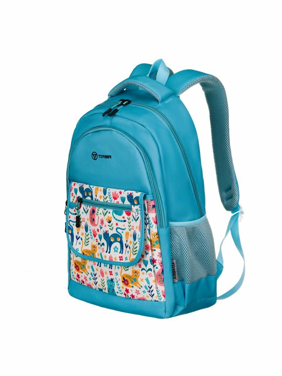 Школьный рюкзак TORBER CLASS X T2743-23-Gr, голубой с орнаментом, 45х30х18 см, 17 л + Мешок для сменной обуви в подарок!