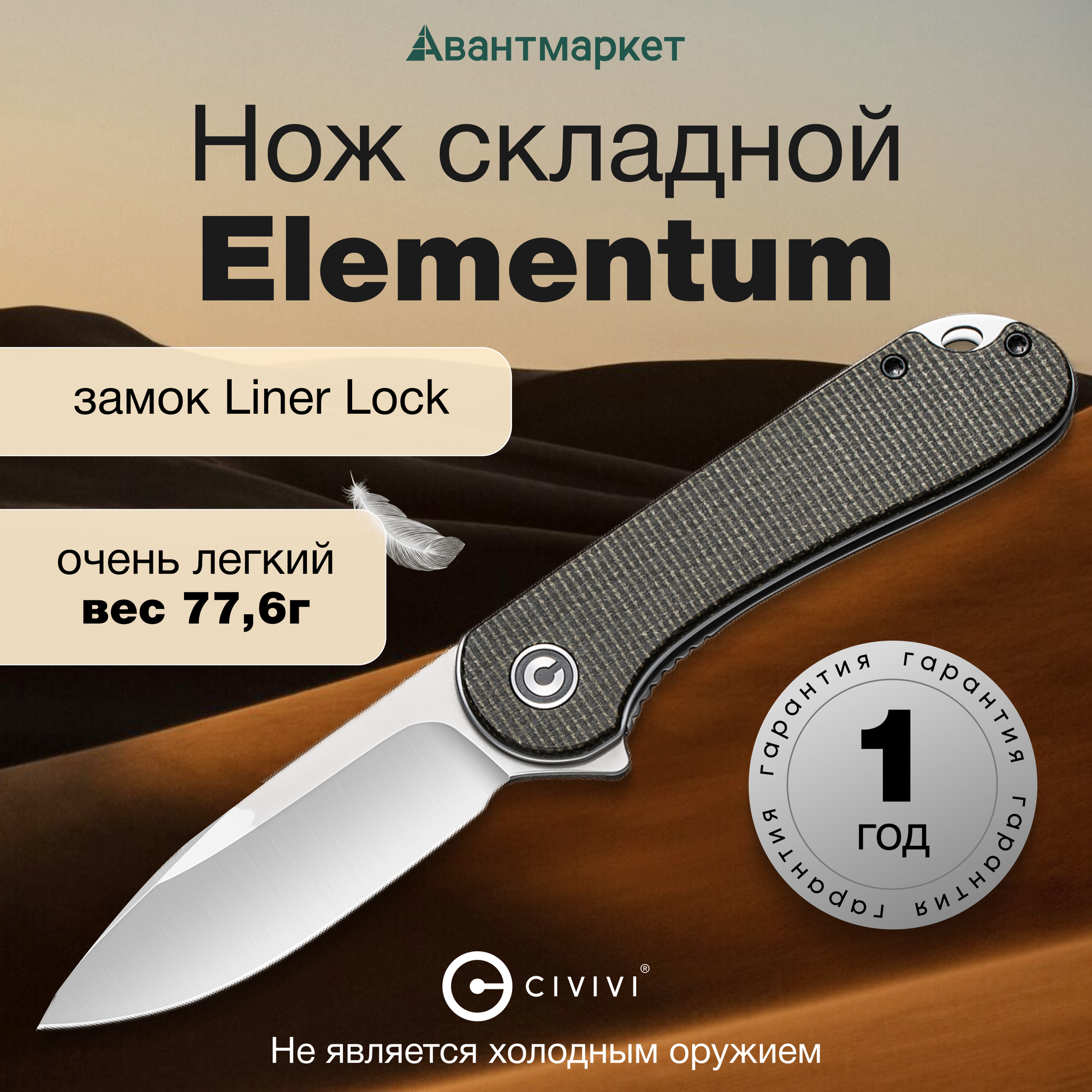 Складной нож CIVIVI Elementum, сталь D2, Dark Green Micarta, 79 г