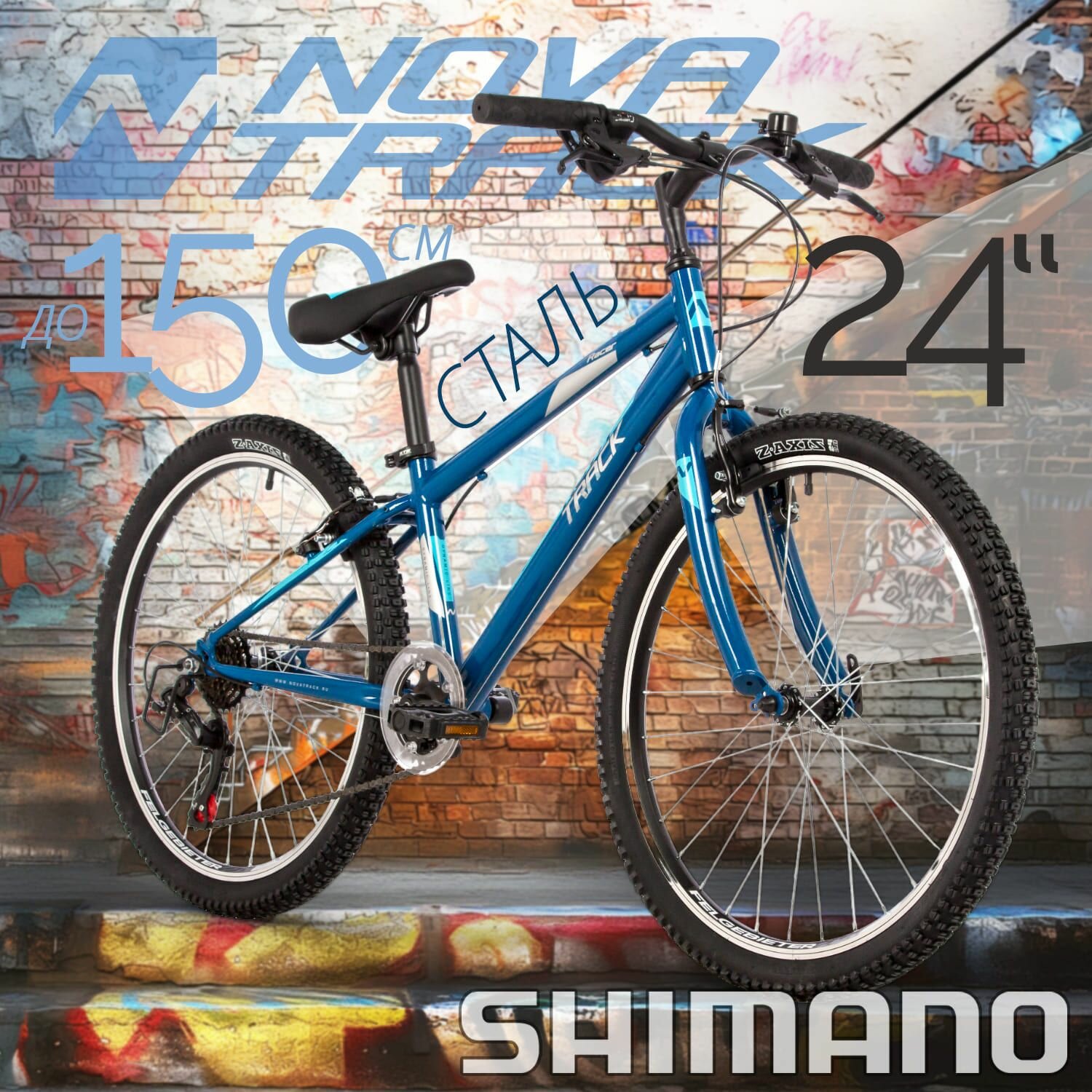 Велосипед Novatrack Racer 24 (2023), стальная рама, на рост 130-155 см, синий