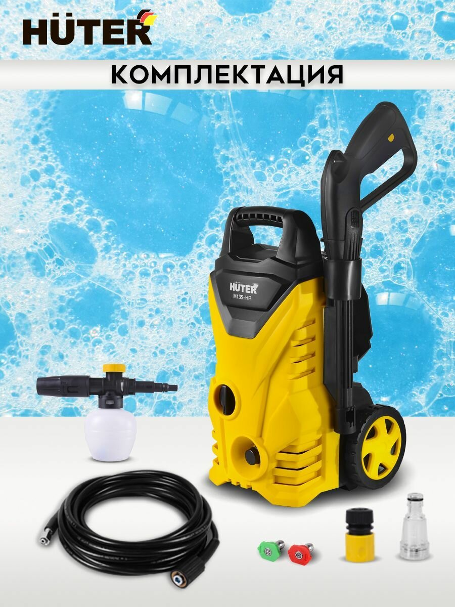 Мойка высокого давления Huter M135-HP, 135 бар/13.5 МПа, 360 л/ч 70/8/13 интересное: