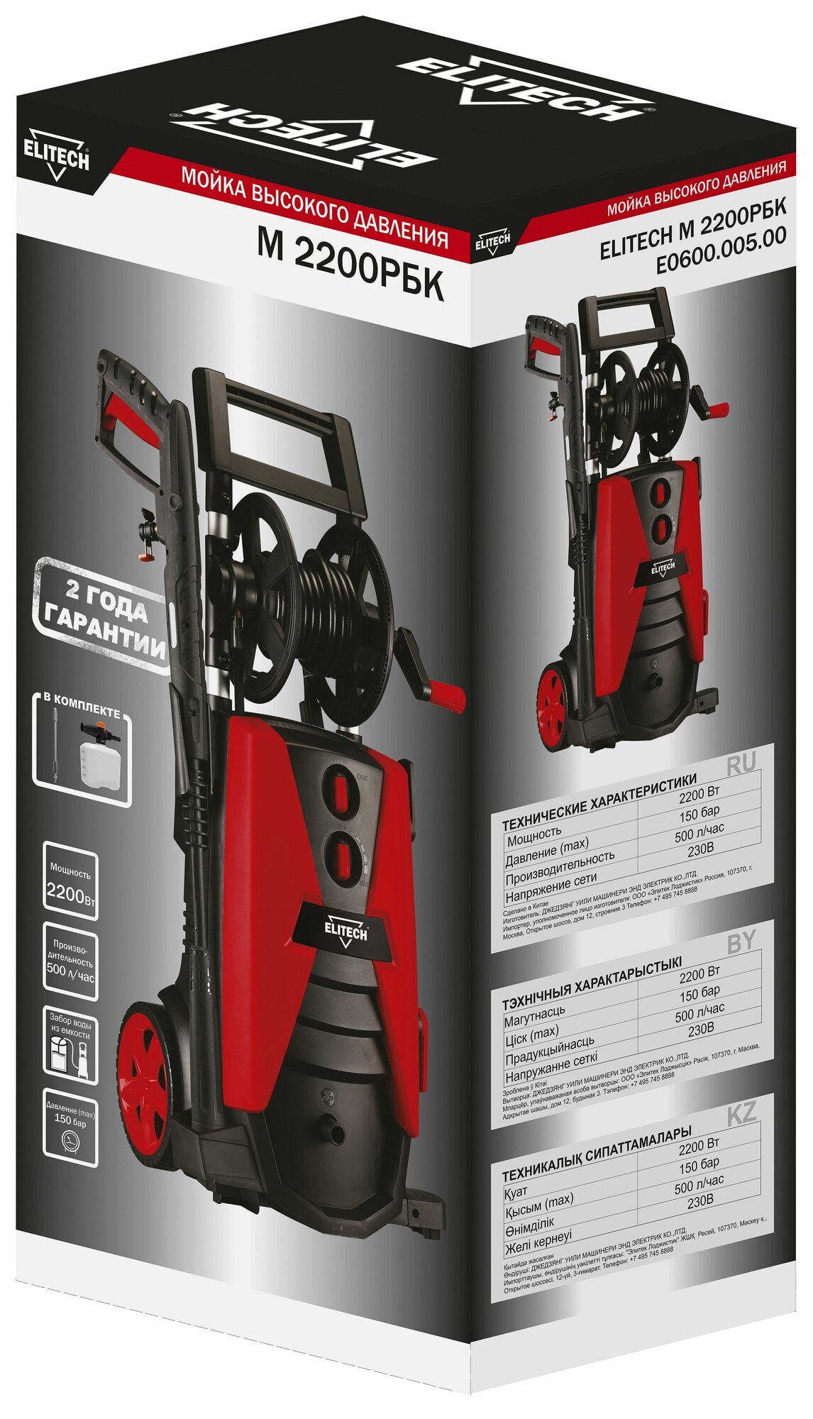 Мойка высокого давления Elitech М2200РБК, 150 бар, 500 л/ч