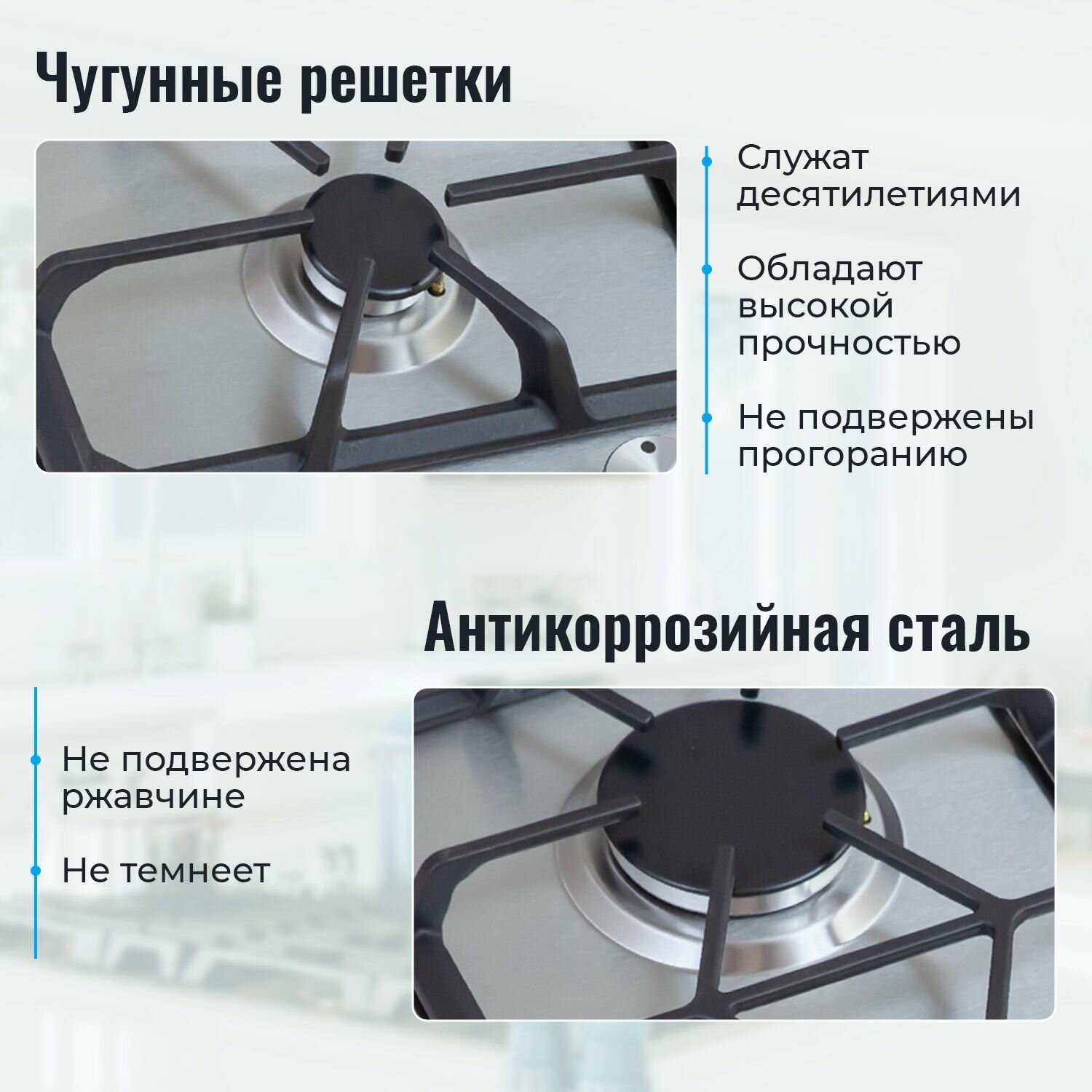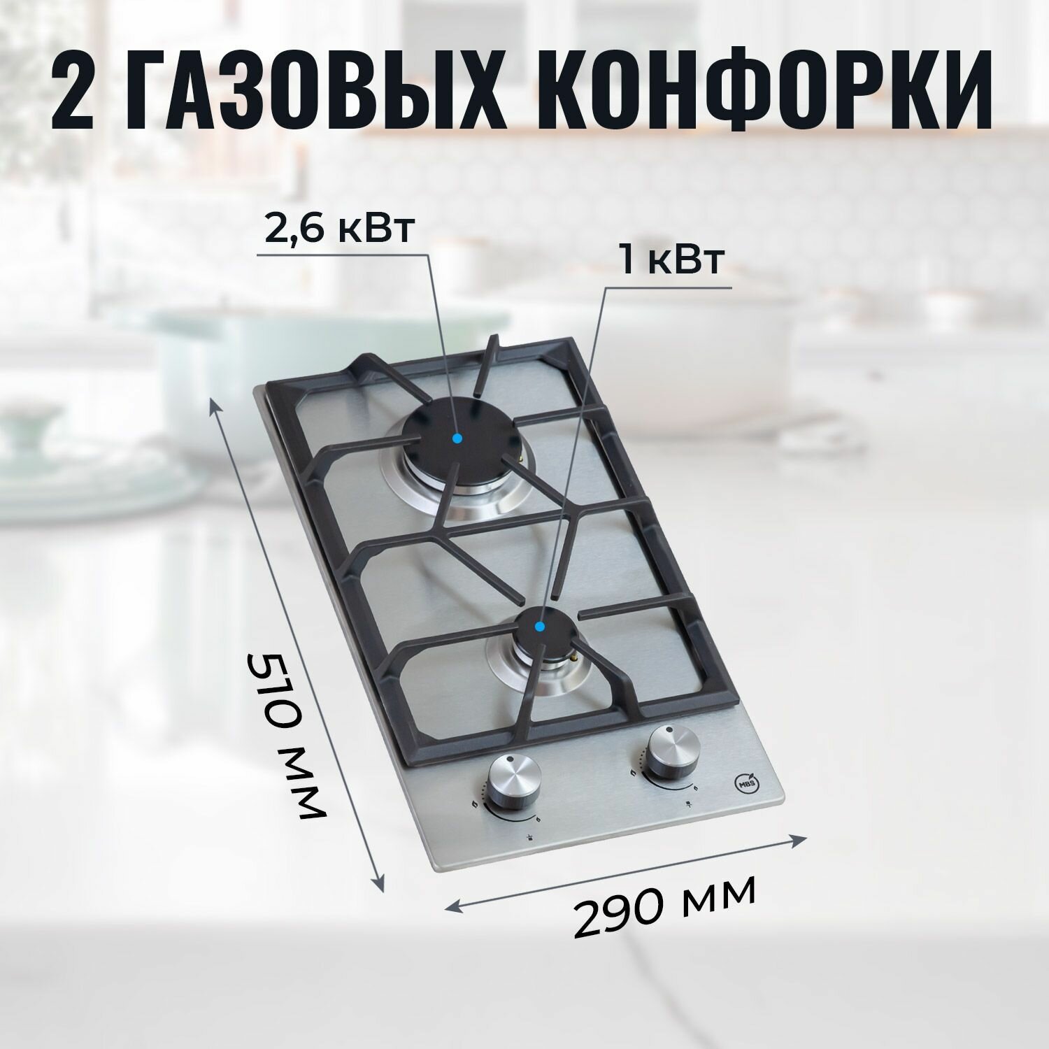 | Дополнительная информация | 2 газовые конфорки: 1 конфорка повышенной мощности 2600 Вт 1 экономичная конфорка 1000 Вт |