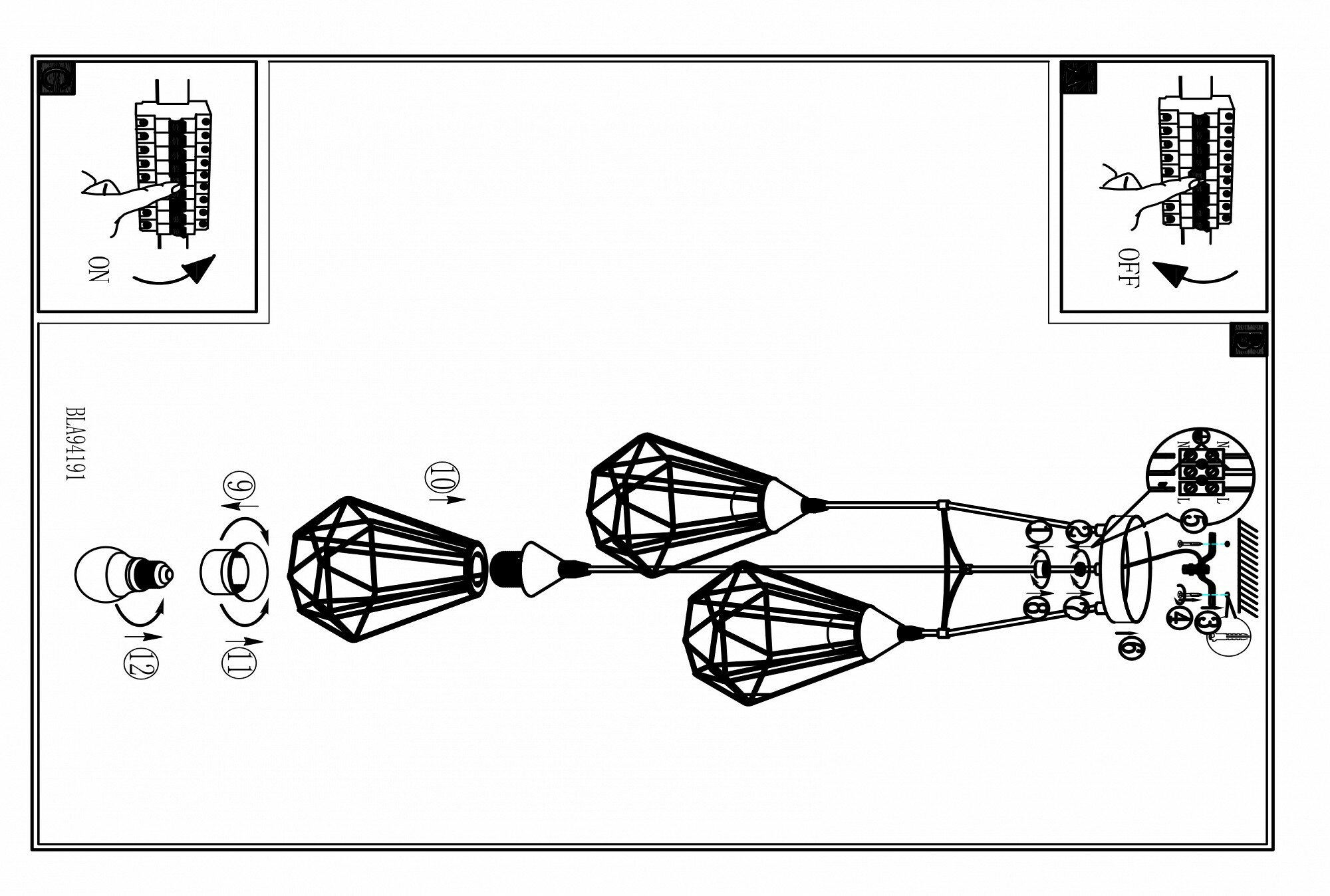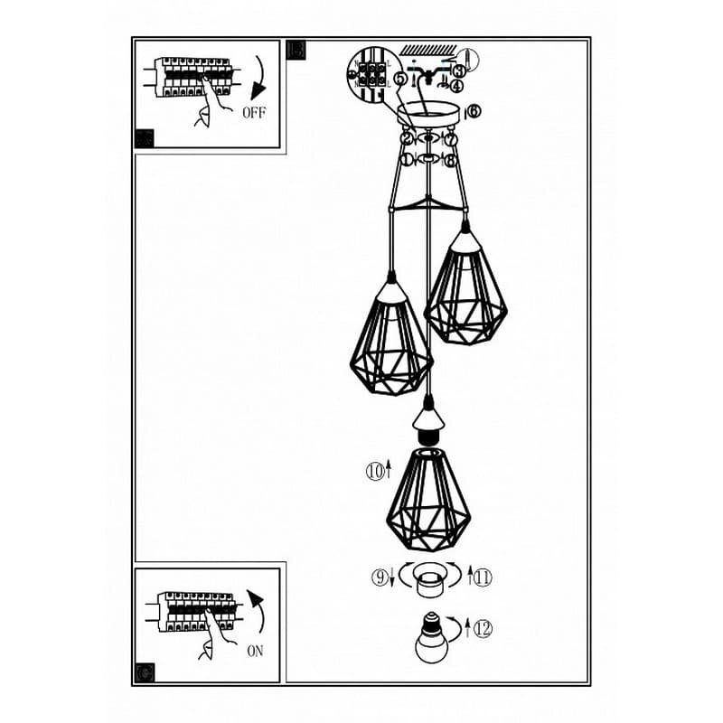 94196 Подвес TARBES, 3x60W (E27), Ø310, H1100, сталь, пластик, медный, черный кабель
