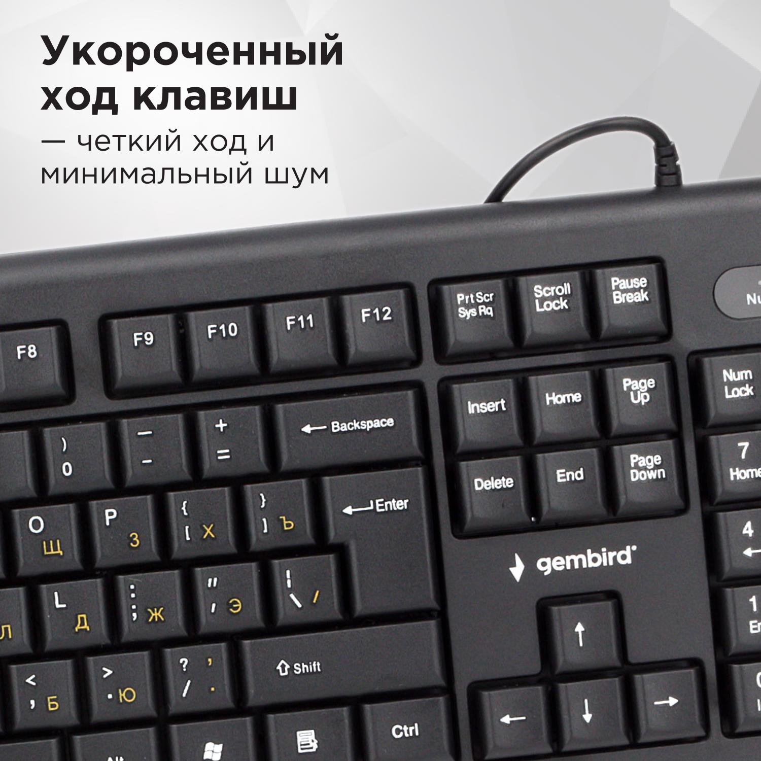 Проводная клавиатура Gembird черная 104 клавиши с кабелем 1.45 метров KB-8354U-BL