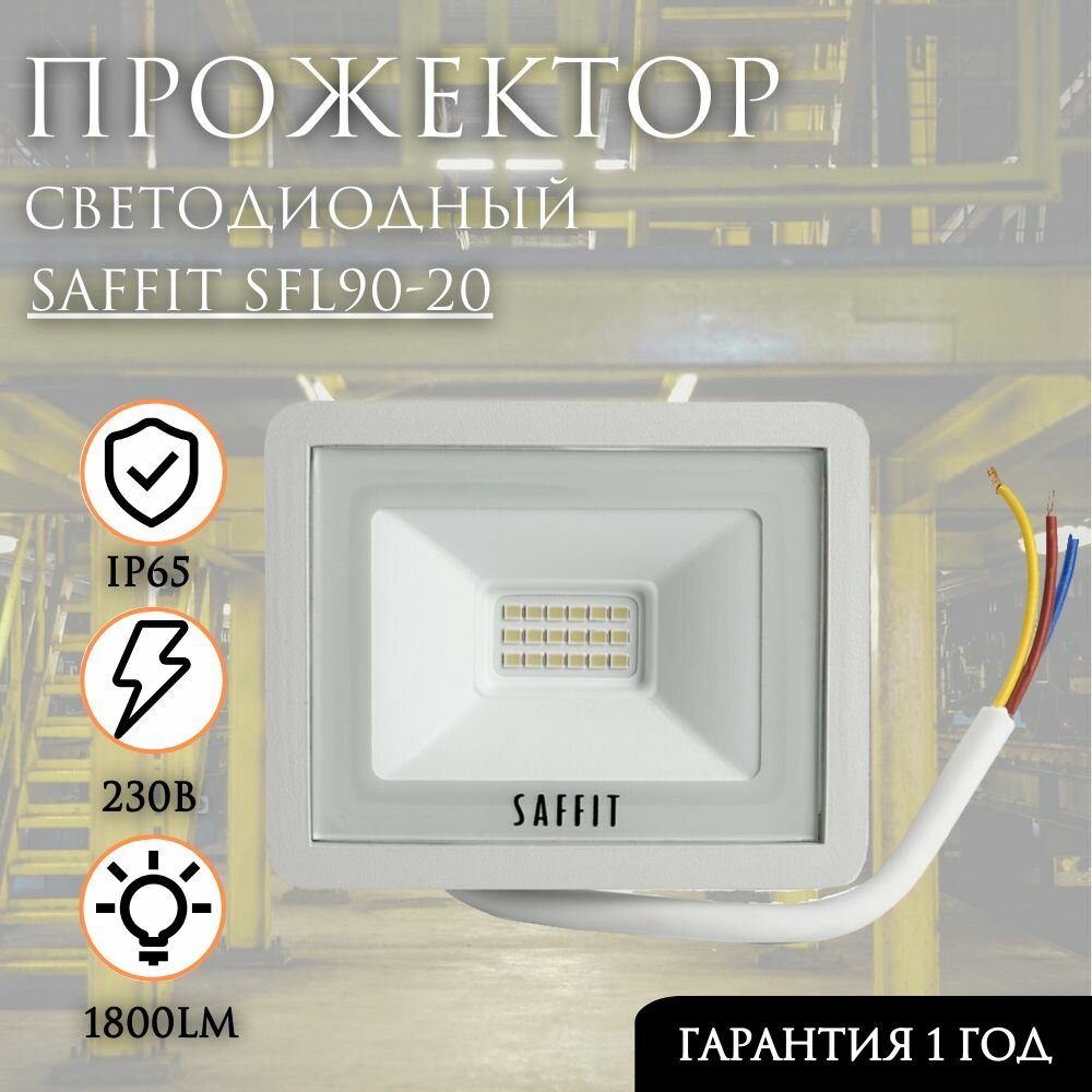 Прожектор светодиодный LED 20Вт 1800Лм белый корпус 6400К, SAFFIT SFL90-20