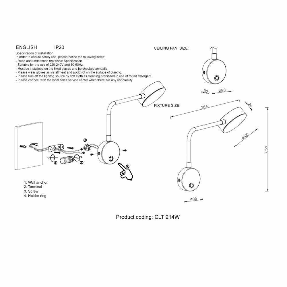 Настенный светильник Crystal Lux CLT 214 CLT 214W BS