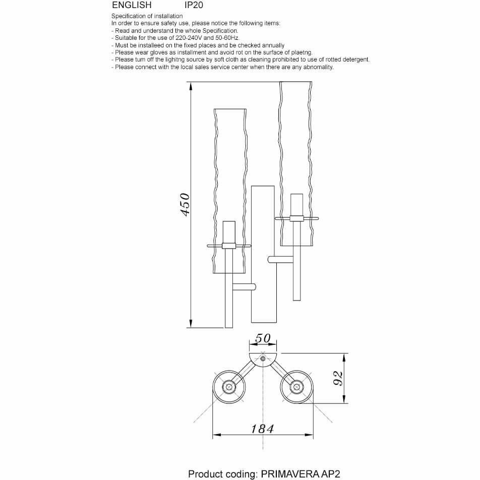 Настенный светильник Crystal Lux PRIMAVERA PRIMAVERA AP2 GOLD