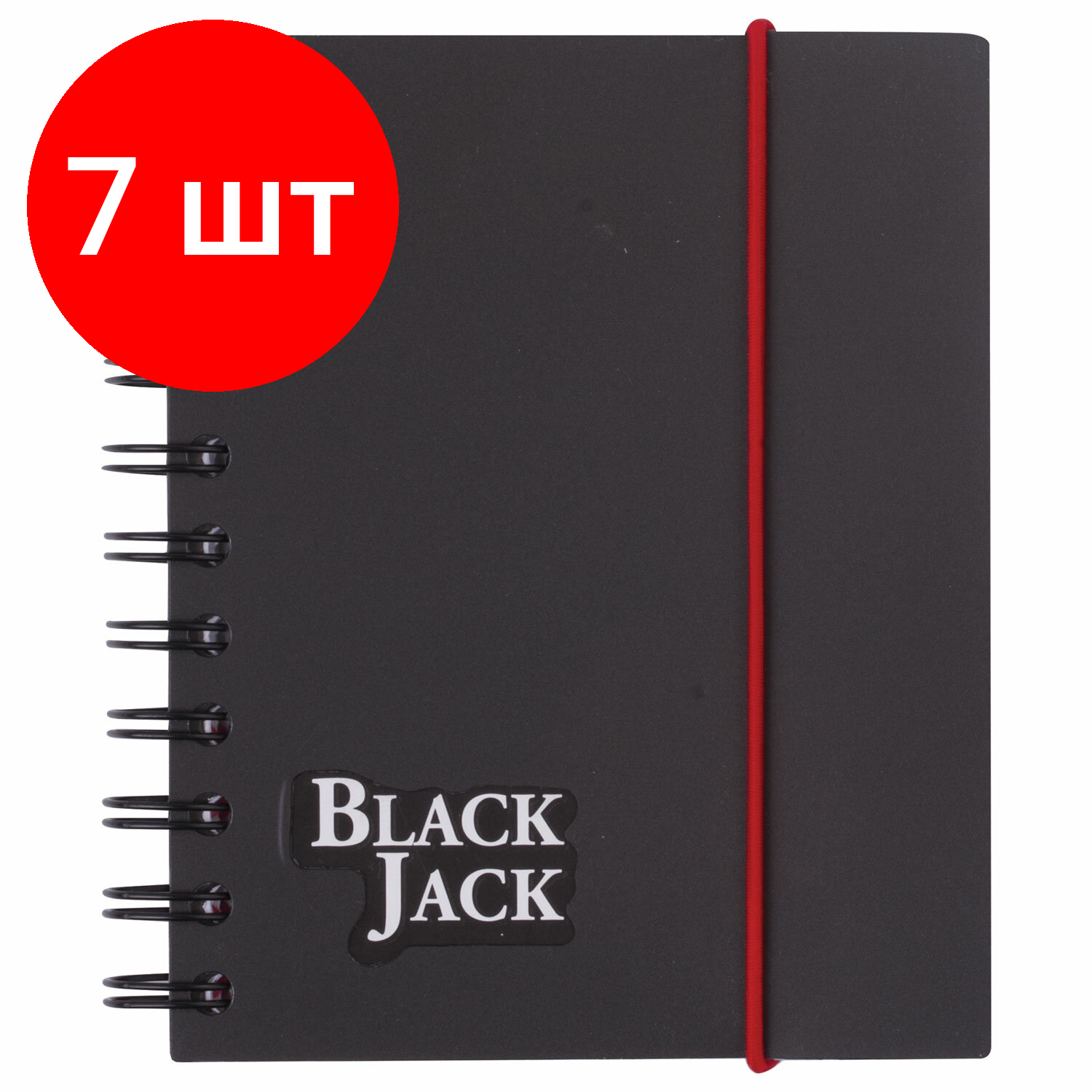 Купить Комплект 7 шт, Блокнот малый формат (105х148 мм) А6, 150 л., гребень сбоку, на резинке, пластиковая обложка, клетка, BRAUBERG, "Black Jack", 125388
