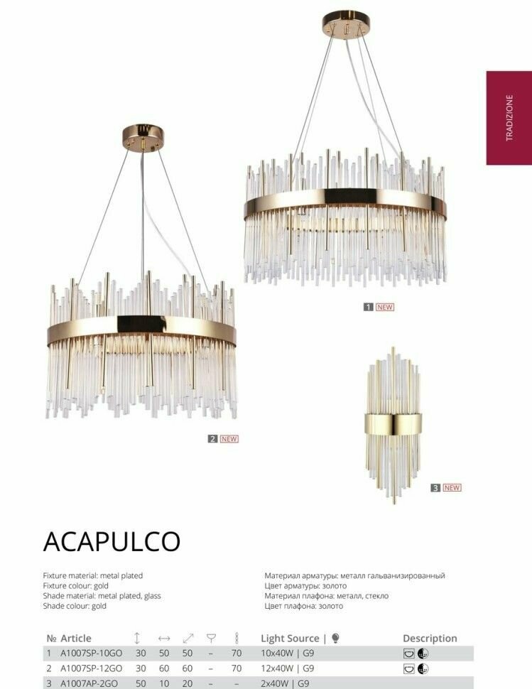 Ниже Вы можете прочитать отзывы на Подвесной светильник Arte Lamp Acapulco A1007SP-12GO, ознакомится с подробными характеристиками, посмотреть интересные обзоры и фотографии на Подвесной светильник Arte Lamp Acapulco A1007SP-12GO.