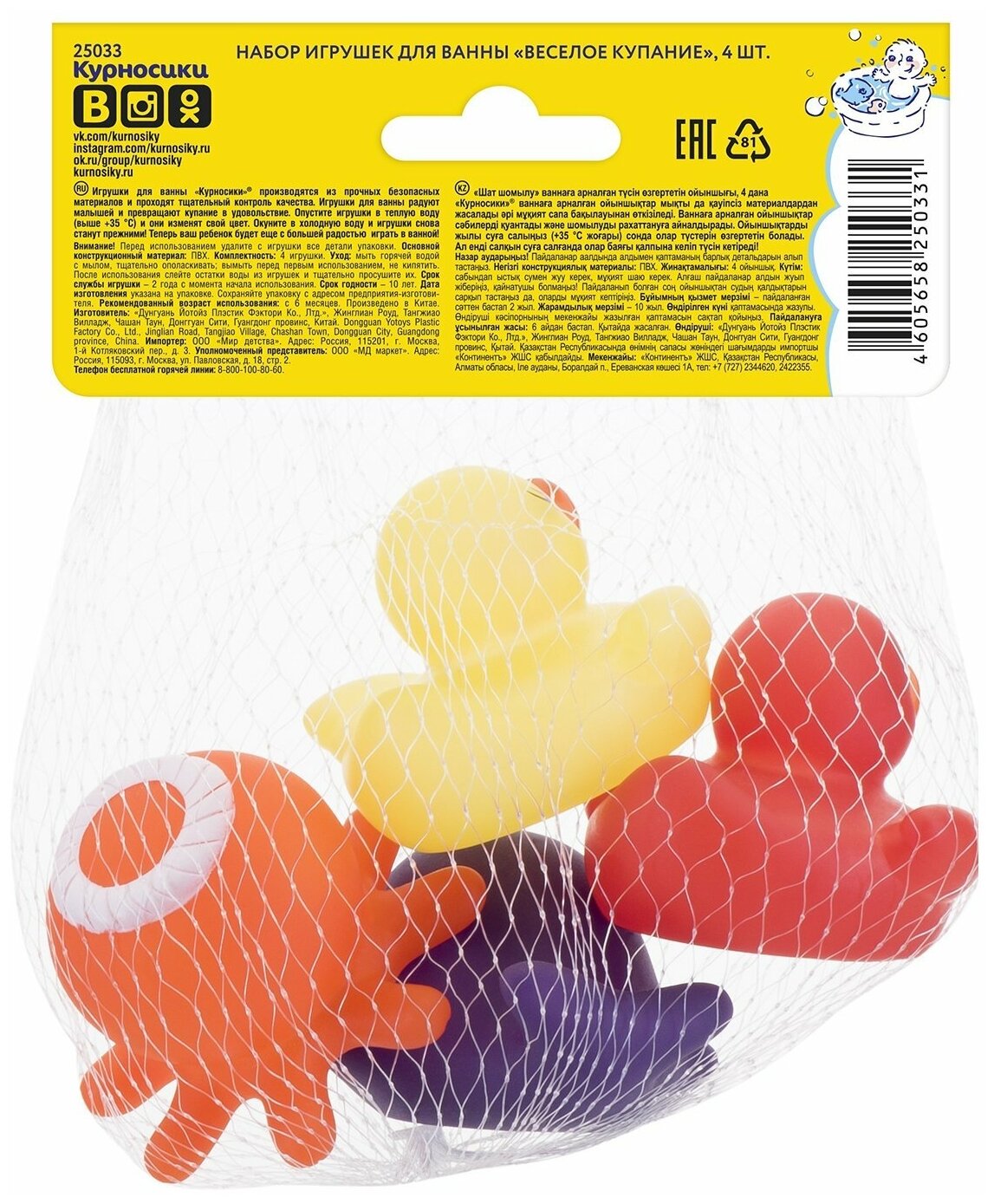 Купить Игрушки для ванной Курносики Веселое купание 4 шт.меняющие цвет 25033