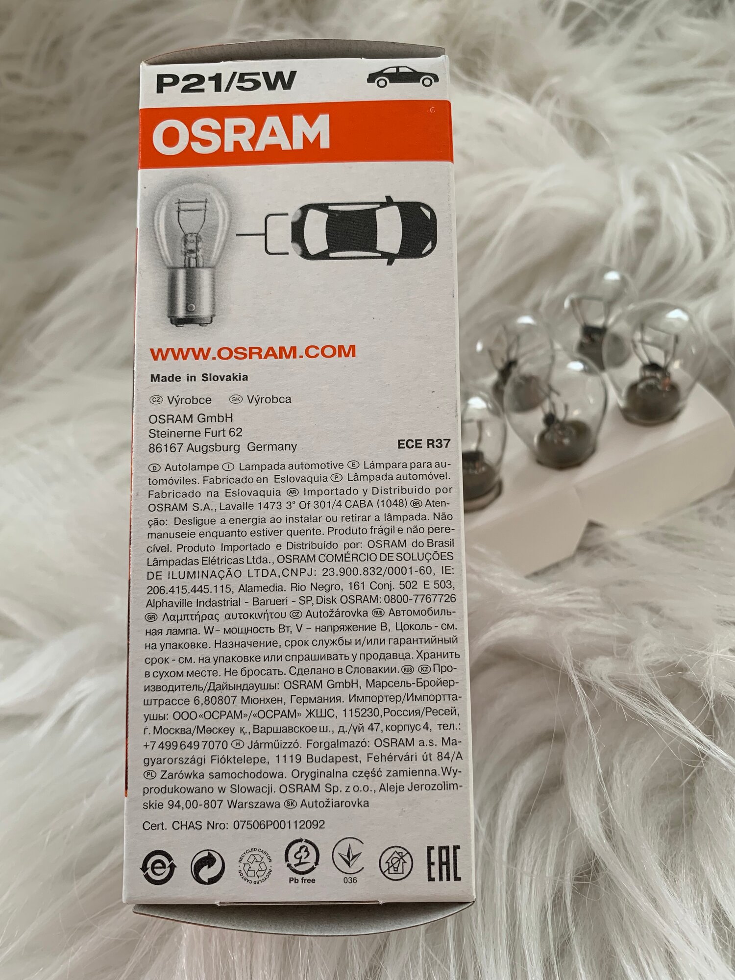 Ниже Вы можете прочитать отзывы на Лампы автомобильные OSRAM 7506 P21W (BA15s) (10шт) 12V , лампы заднего хода, ознакомится с подробными характеристиками, посмотреть интересные обзоры и фотографии на Лампы автомобильные OSRAM 7506 P21W (BA15s) (10шт) 12V , лампы заднего хода.