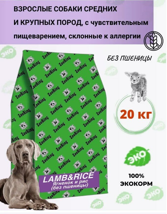 Купить Сухой корм ZooRing ягненок и рис для собак, 20кг