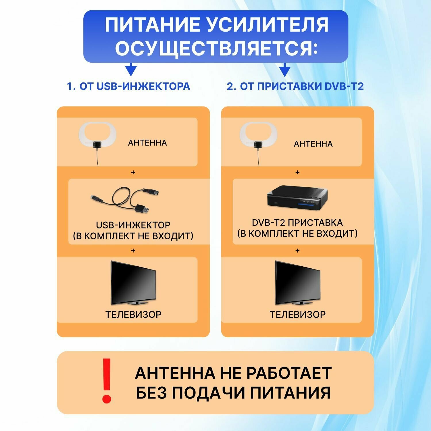 Антенна комнатная для цифрового телевидения DVB-T2 с усилителем