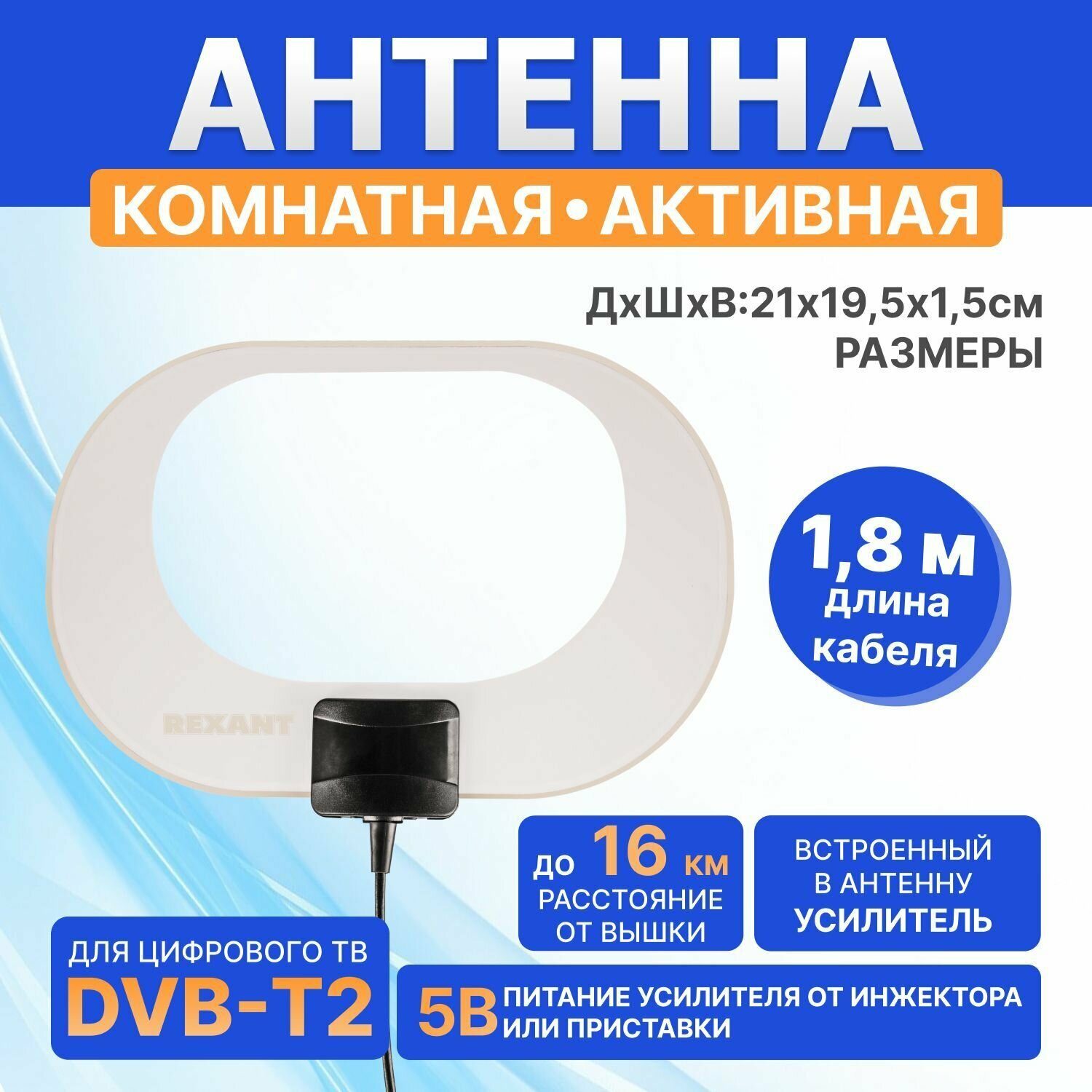 Антенна комнатная Rexant 713 "Активная" для цифрового телевидения DVB-T2 до 16 км . интересное: