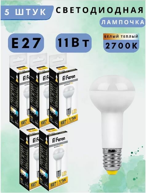 Лампа светодиодная Feron LB-463, E27, мощность 11Вт, рефлектор, теплый белый свет, 5 шт.