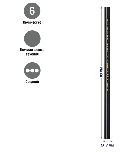 Угольный карандаш Faber-Castell "Pitt", мягкий, натуральный