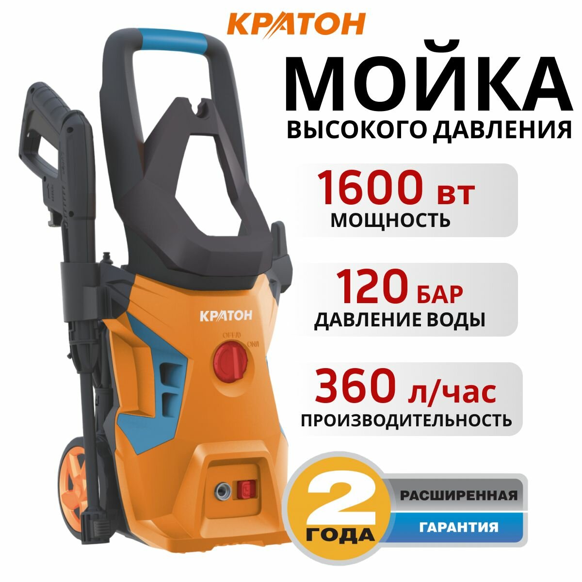 Купить Мойка высокого давления Кратон HPW-1600 (1.6 кВт, производительность 360 л/ч, мax давление воды 120 бар, функция всасывания) / моющий аппарат / минимойка для автомобиля