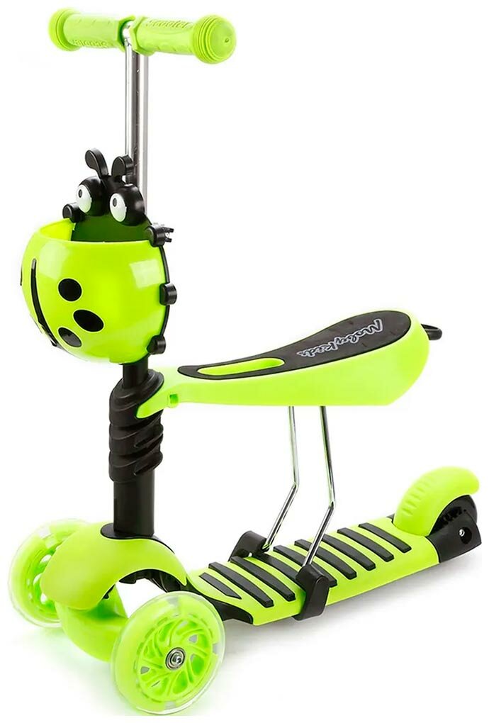 Купить Самокат Moby Kids Божья коровка, 3 в 1, светящиеся колеса, зеленый (641274)