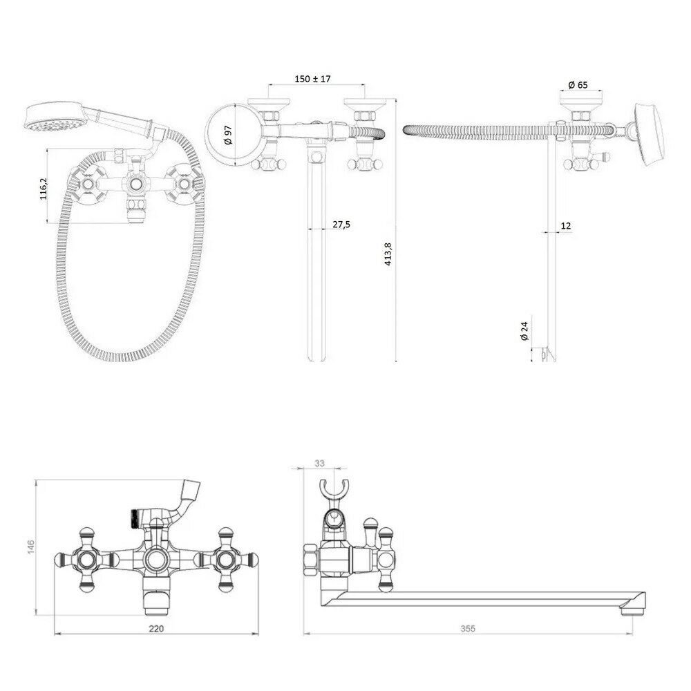 Bronze de Luxe Душевой комплект Bronze de Luxe Scandi 14582BR с внутренней частью, бронза