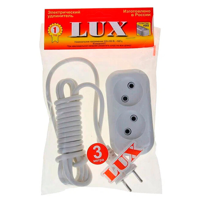 Купить Удлинитель LUX У2-О-03 двухместный без заземления, 250 В 10 А, 3 м (4606400414490)