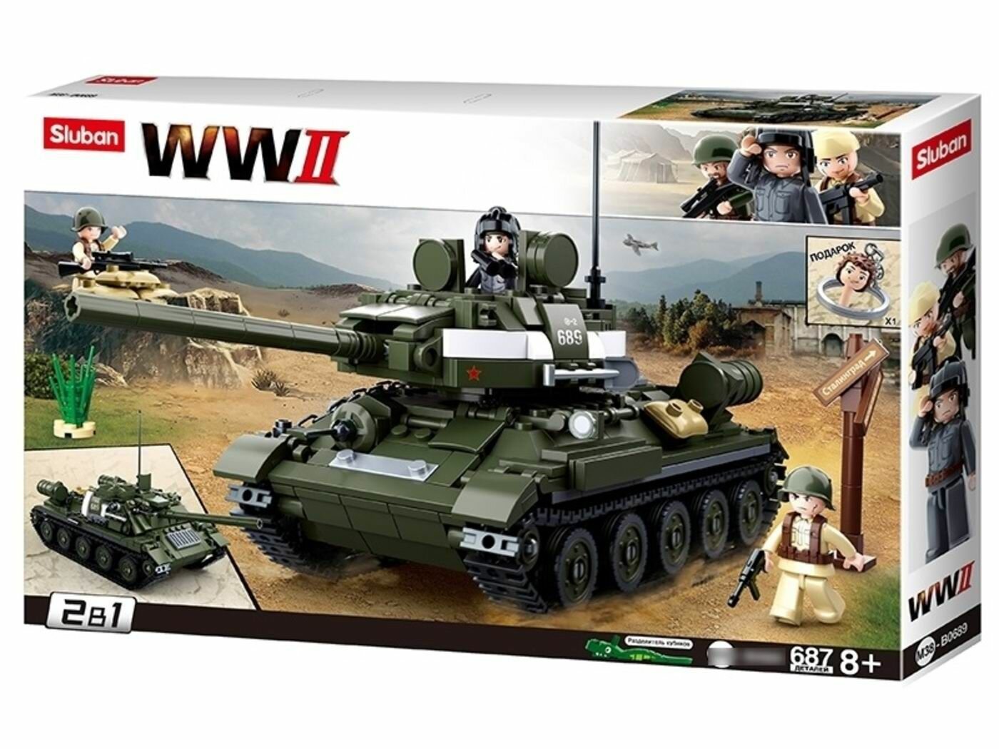 Конструктор Sluban серия "Вторая Мировая война", Танк, Т34 или 85 модель, 687 деталей (M38-B0689)