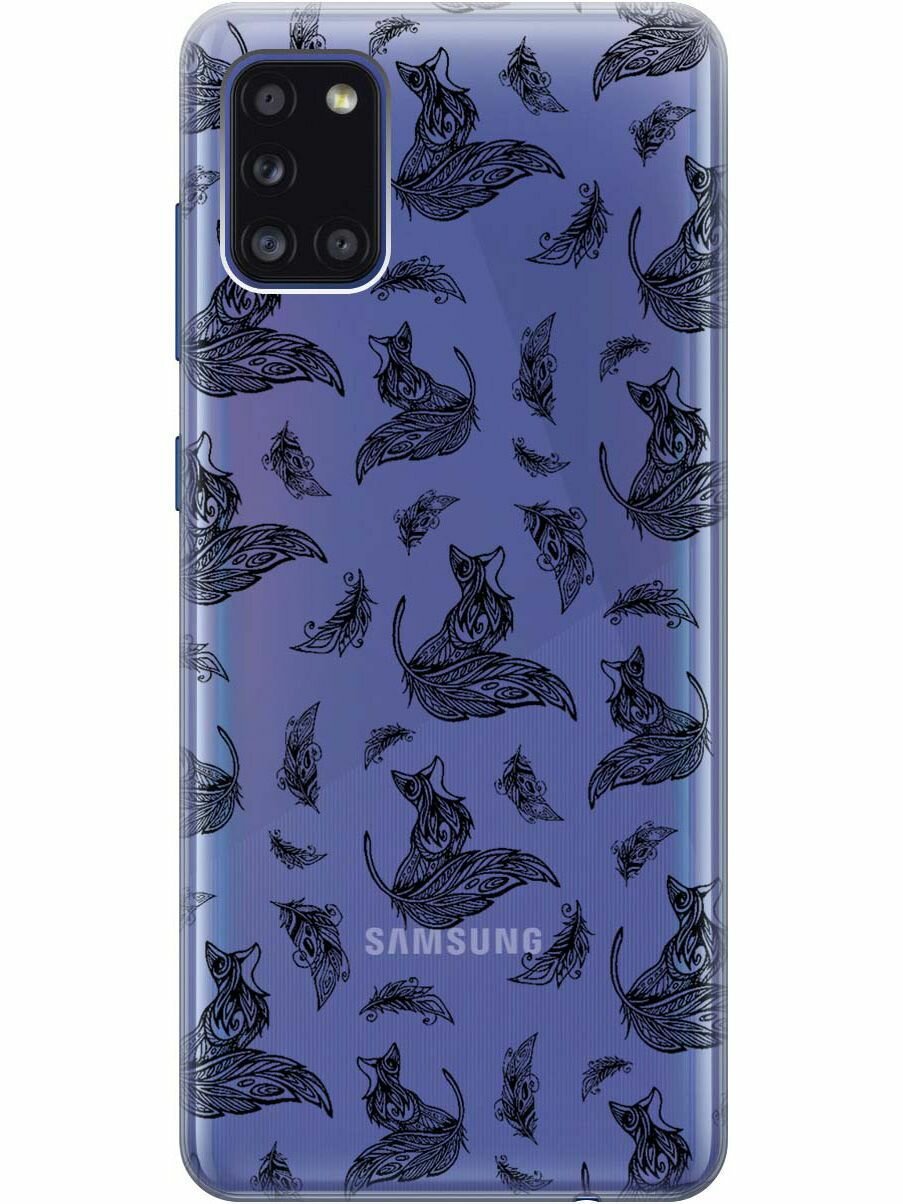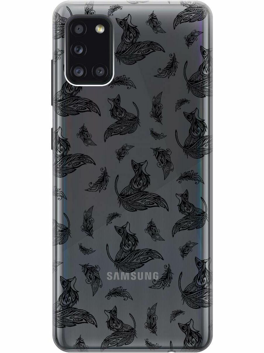 Чехол - накладка Transparent для Samsung Galaxy A31 с 3D принтом "Foxes and feathers" интересное: